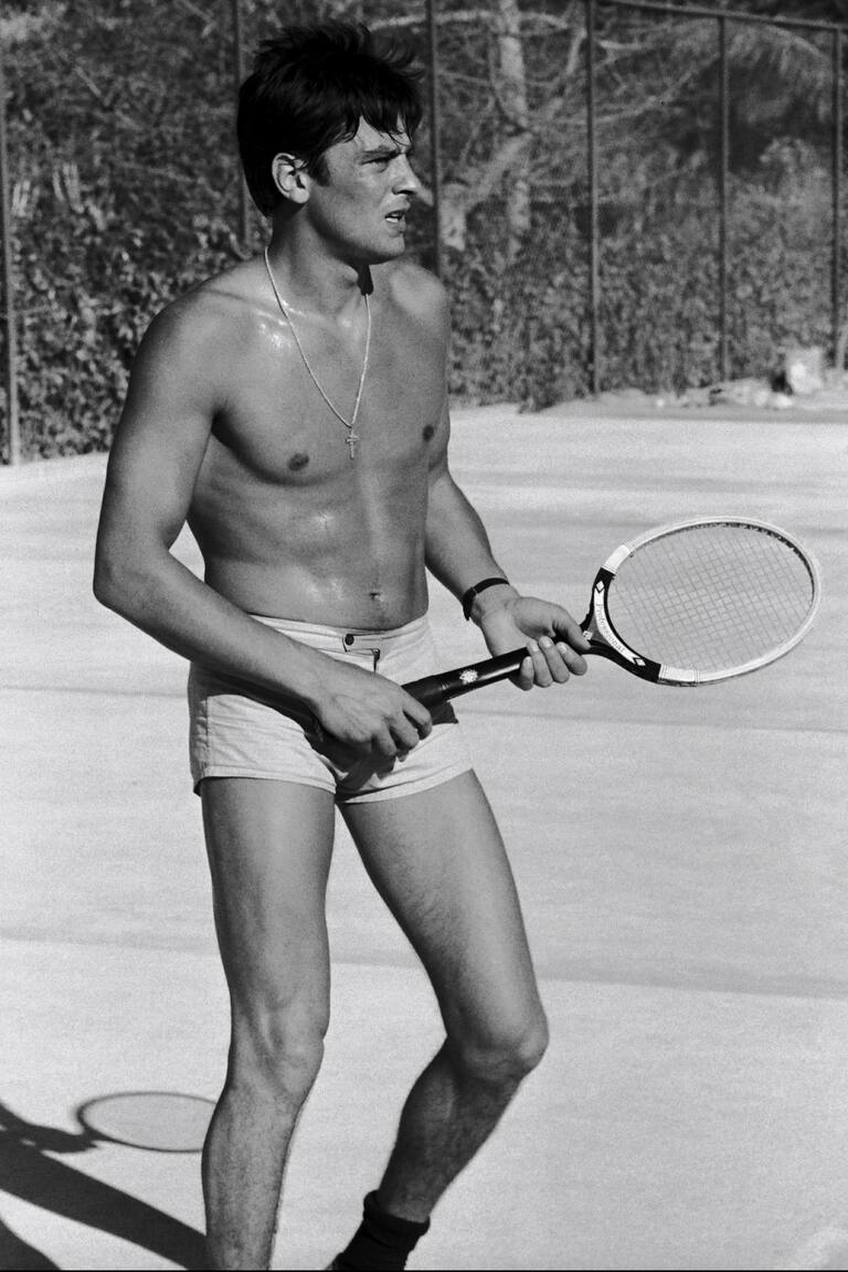 Притежател на аполонова красота, която го превърна в обект на желание по целия свят, той показва своето съвършенство, като играе тенис с открит торс (1965).Getty Images